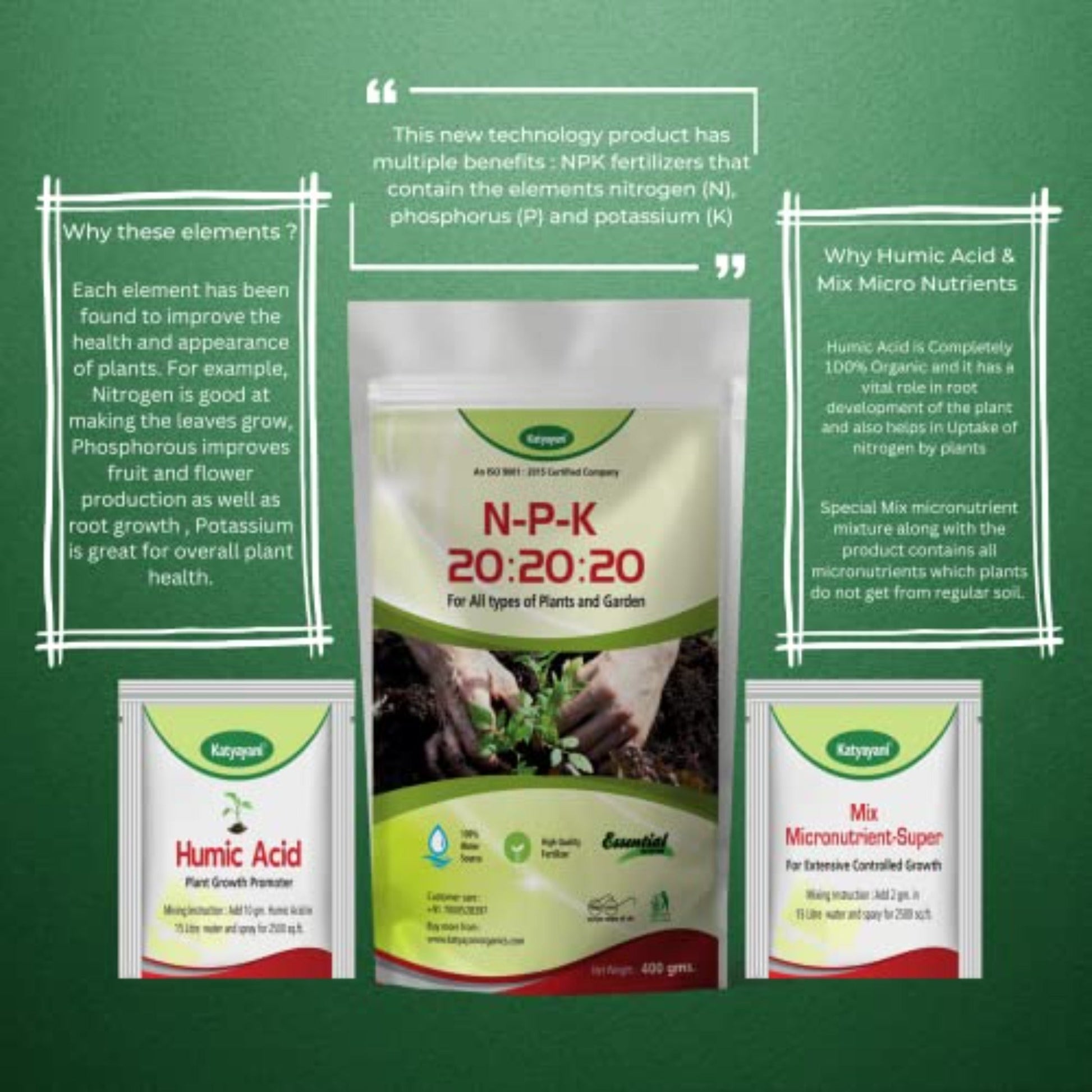 NPK 20 20 20 Fertilizer with 2 Sample -Mix micronutrients and Organic Humic Acid