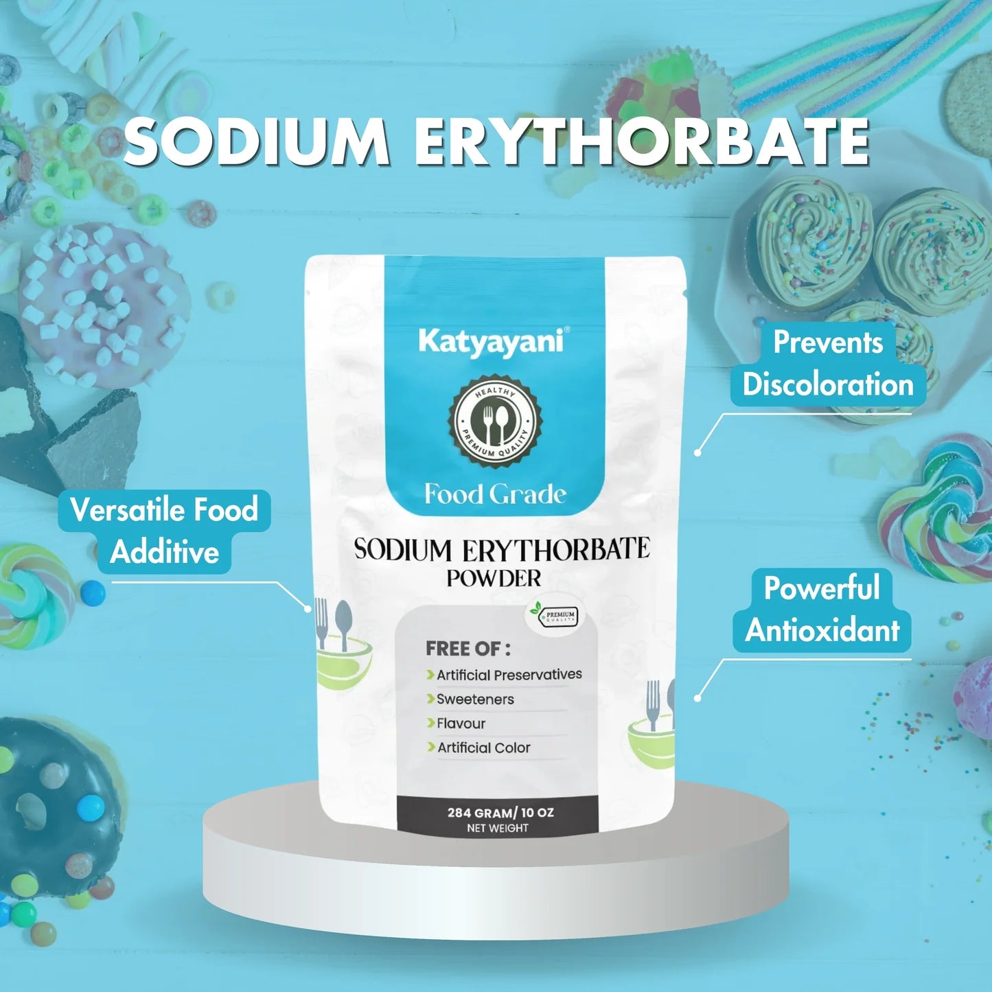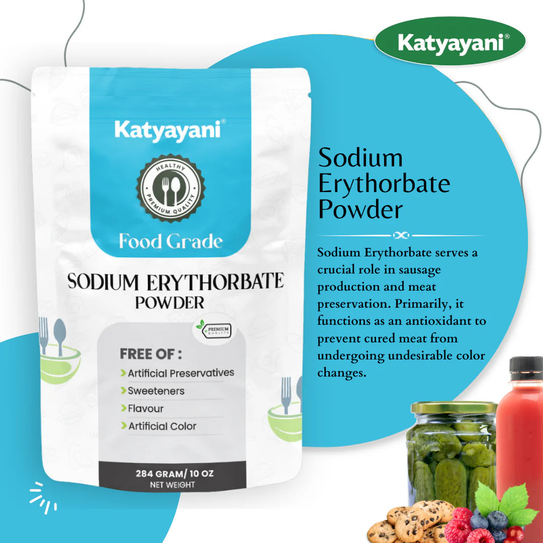 This high-quality, white crystalline powder is a sodium salt of erythorbic acid, structurally related to Vitamin C, and is widely used across the food and beverage industry to extend shelf life, maintain color integrity, and preserve the freshness of various products.