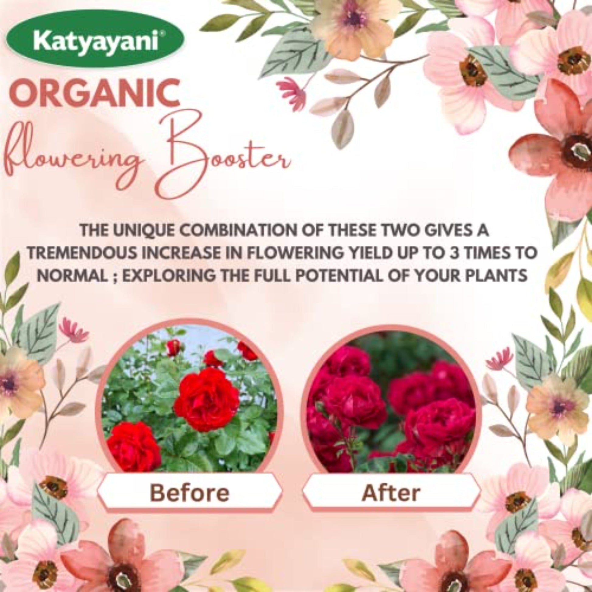 - یہ آپ کے پودوں کی مکمل صلاحیت کو تلاش کرتے ہوئے، درخواست کے 3-5 دنوں میں موجودہ پیداوار میں 3 گنا تک پھولوں کو بڑھاتا ہے۔ یہ پودوں میں موجودہ اور نئے پھولوں کے رنگ اور سائز کو بڑھاتا ہے۔ مائیکرو نیوٹرینٹ سپر پیکٹ پروڈکٹ کے ساتھ مٹی کی صحت کو بڑھاتا ہے اور پودے کے پھول آنے کے لیے مٹی کے بہترین حالات پیدا کرتا ہے۔