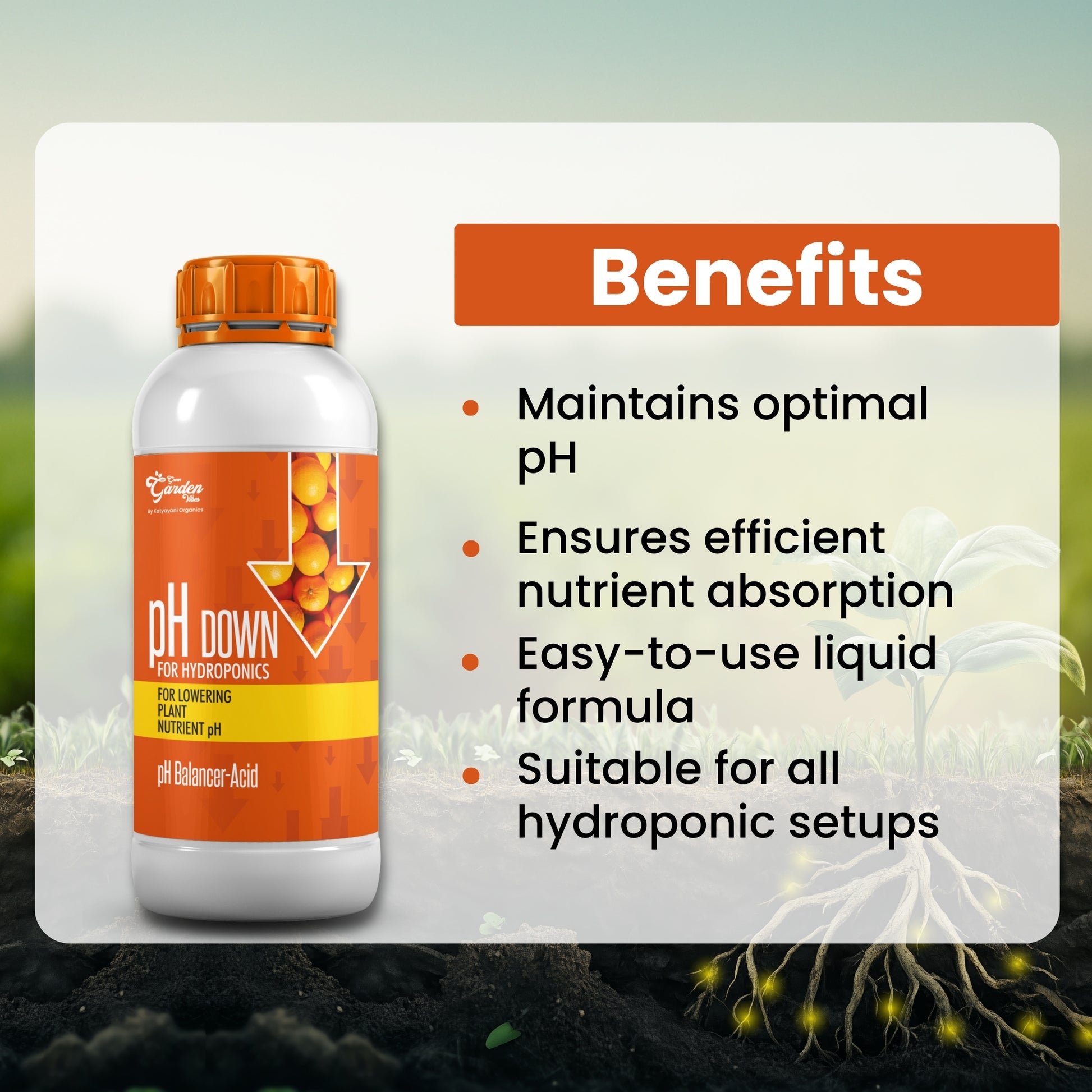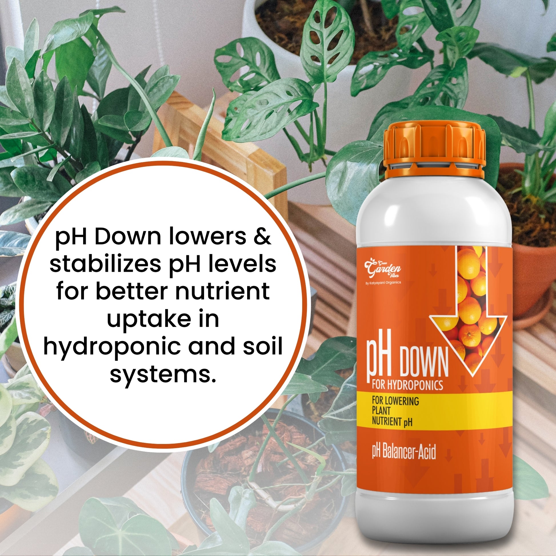 - غذائیت کے محلول میں پی ایچ کی صحیح سطح اہم ہے۔ بہت زیادہ پی ایچ ناقابل حل مادوں کی تشکیل کا سبب ہے، اور بہت کم پی ایچ جڑ کے ماحول کے لیے خطرناک ہے۔ زیادہ تر ہائیڈرو فصلوں کے لیے بہترین سطح پی ایچ 5.2 سے 6.4 ہے۔ کاتیاانی پی ایچ ڈاؤن ہائیڈروپونکس سسٹم کے پی ایچ کو کم کرنے میں ناقابل یقین حد تک کام کرتا ہے۔