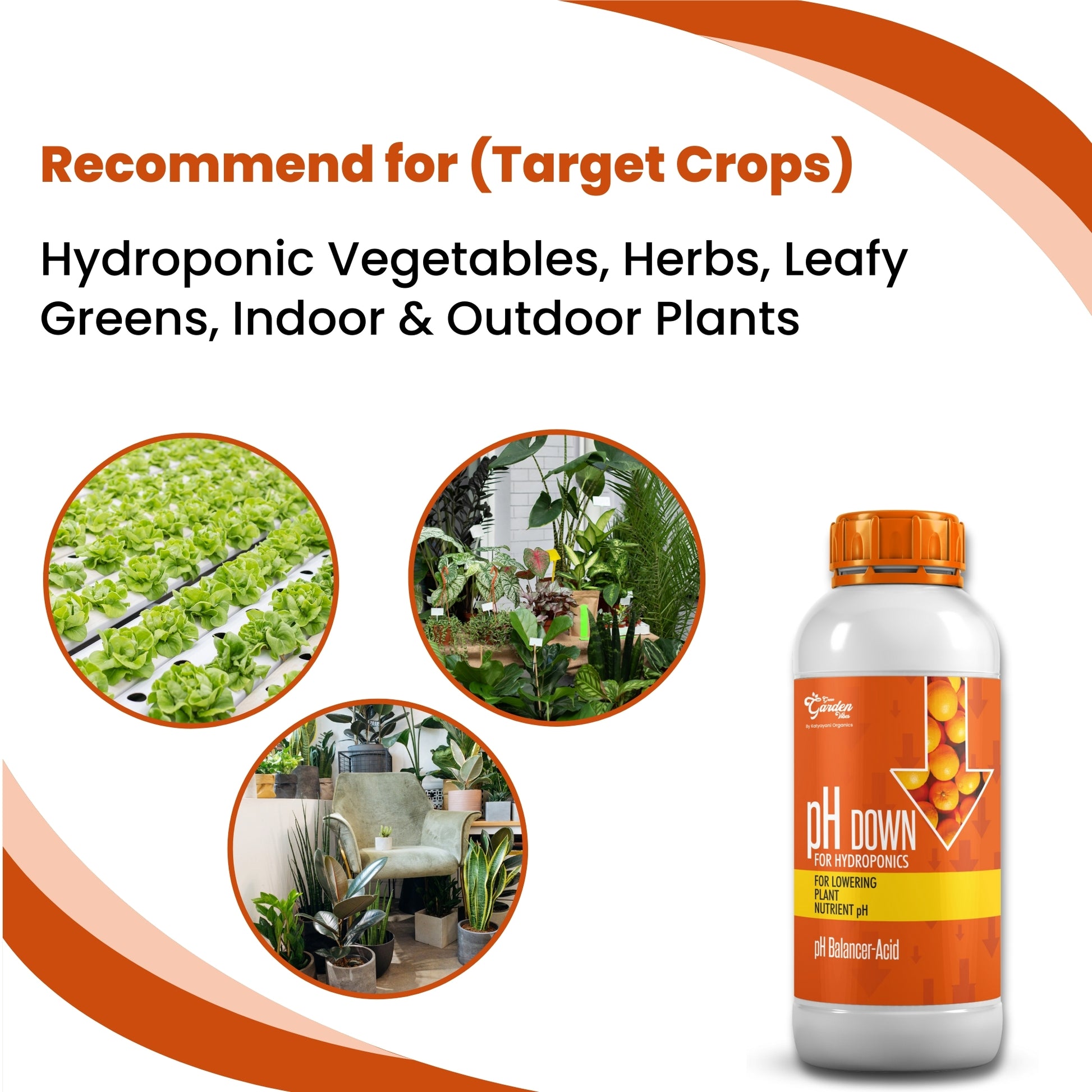 - کاتیاانی پی ایچ ڈاؤن کو ہر قسم کے ہائیڈروپونک غذائی اجزاء کے لیے استعمال کیا جا سکتا ہے۔ یہ کوئی ناپسندیدہ باقیات یا عناصر نہیں چھوڑتا، اس لیے پودوں کے لیے محفوظ ہے۔ یہ جڑ کے علاقے میں غذائی اجزاء کے جذب کو نمایاں طور پر بہتر بناتا ہے۔